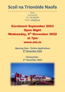 Leaving Cert student Seán Togher is on the Wellbeing team. He performed a memorable version of Katy Perry – Firework at the Kindness Cafe. Seán has played rugby with Clanwilliam RFC since he was eight years of age and hurling with Cappa/Solohead. Seán was soccer player of the year in 2021 and captained the U13 football team to the West final and won. Seán had many enjoyable moments in STN. Seán would like to become an electrician and hopes to live in Australia. We are very proud of you Seán. Best wishes for the future #wellbeing #LCstudents